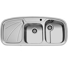 سینک اخوان توکار مدل 6 دو لگنه : توکار یکی از اولین و پر فروش ترین سینک های توکار بازار با ابعاد 116 * 50 سانتی متر با طرح سینی پروانه و خروجی فاضلاب در قیمت سینی